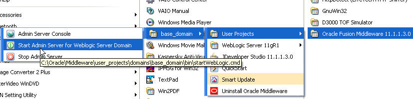 I Installed the Oracle Fusion Middleware version 11.1.1.3 mainly to run some SOA tutorial.