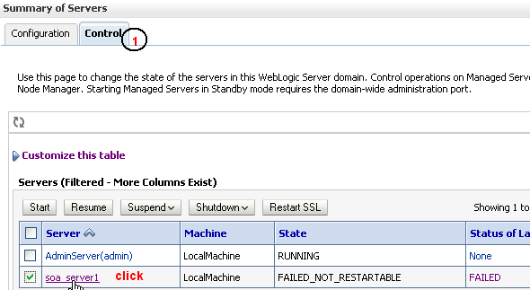 then Go to Control Tab, check Soa_server1 and click on the link