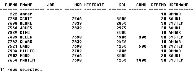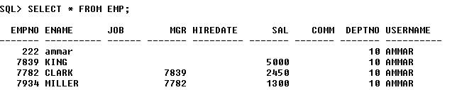 What we are after is then, when a user, executes a query against the EMP table, we want the following to take place automatically